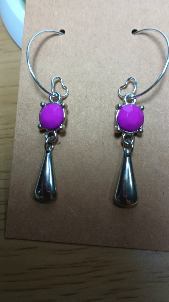 Featuring a vibrant glass magenta tone set in a sliver-claw style setting, these earrings radiate free-spirited elegance. a teardrop-shaped silver charm hangs delicately below, adding fluid movement and a touch of modern chic. The Open hoop design with a subtle heart detail at the top complements the whimsical, romantic vibe, making them perfect for boh-inspired outfits and adding a bold pop of color to everyday wear.